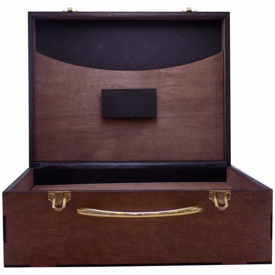 PORTAFOLIO DE MADERA CON HERRAJES DE LATÓN, MATERIAL SUAVE AL TACTO EN SU INTERIOR( OPCIONAL )