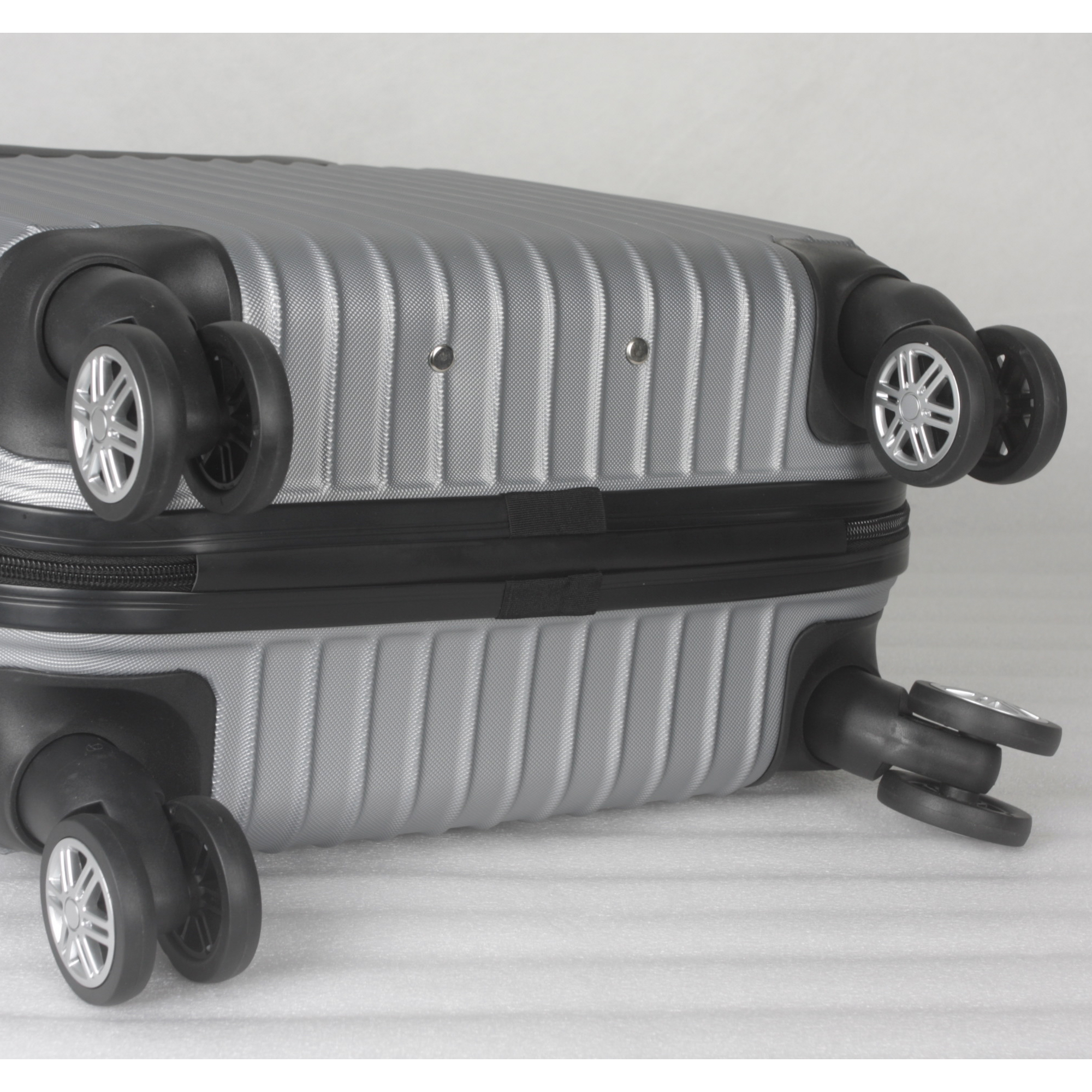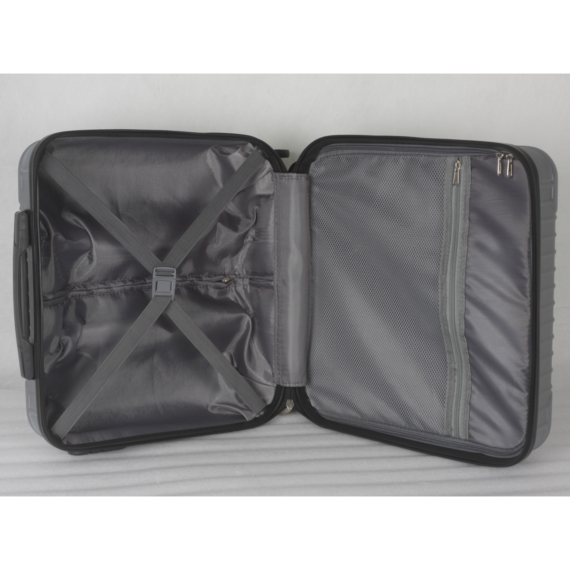 Maleta rigida de viaje gris con mango retractil de aluminio.