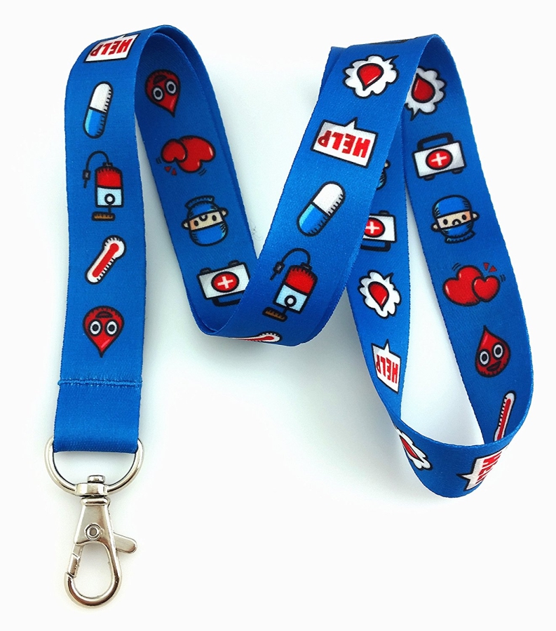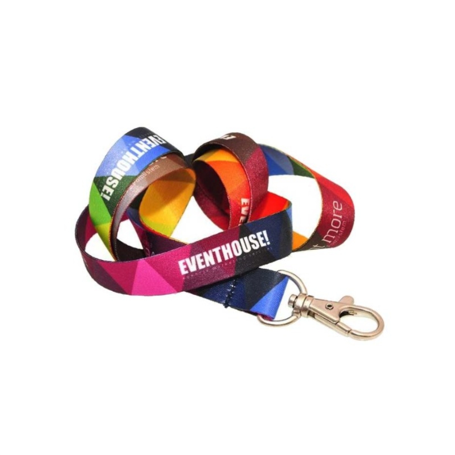 Cordón portagafete de 19 mm. con impresión en sublimación por ambos lados en selección a color, bandola perico.